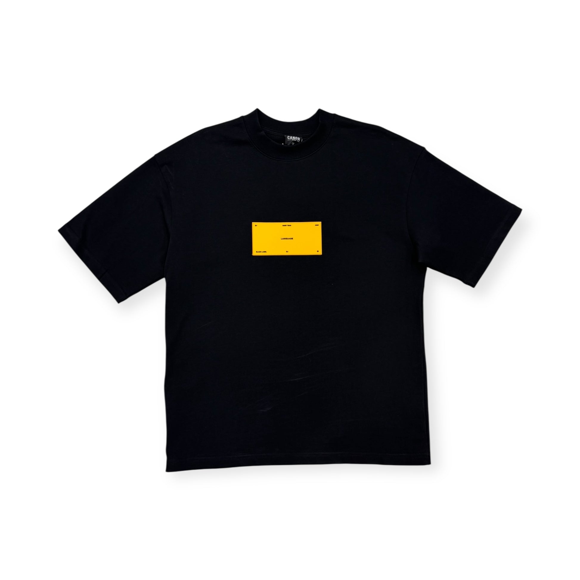 Con su silueta oversize y algodón de alto gramaje, esta camiseta negra no solo se siente premium, se nota. El contraste con el parche amarillo al frente evoca la señalética industrial londinense, donde lo clásico y lo rebelde conviven en cada esquina.